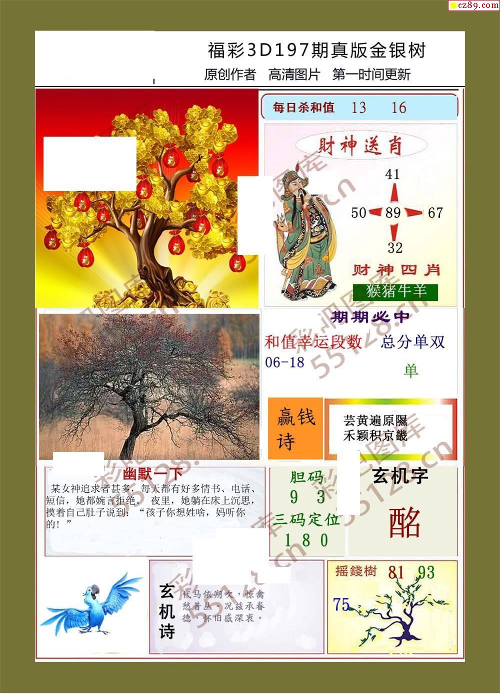 金银树21年197期福彩3d字画谜