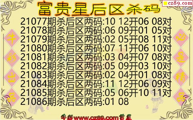 大乐透086期富贵星后区杀码图谜