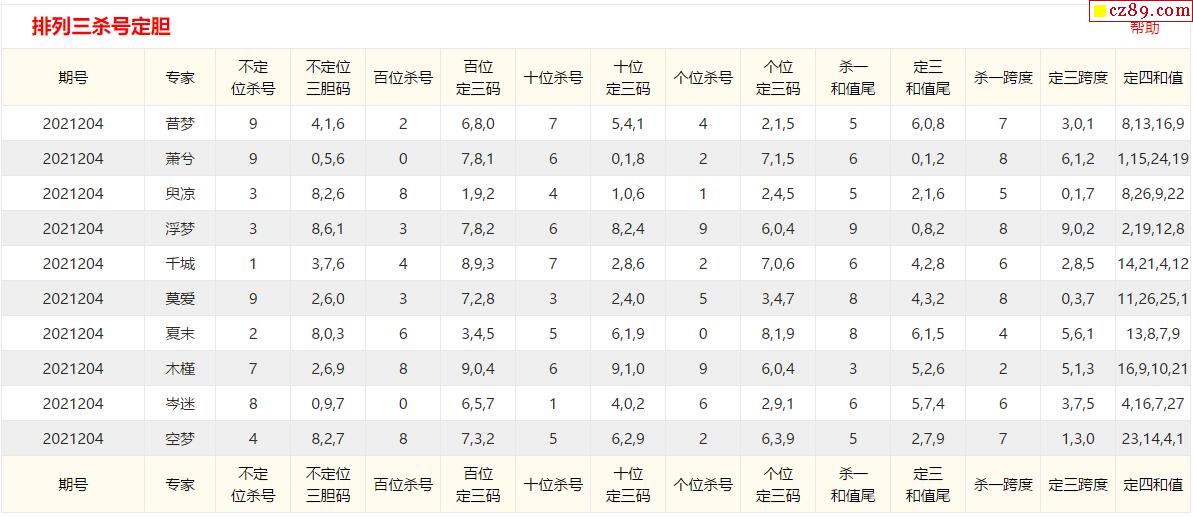 21年204期彩宝贝专家体彩P3杀号定码图表