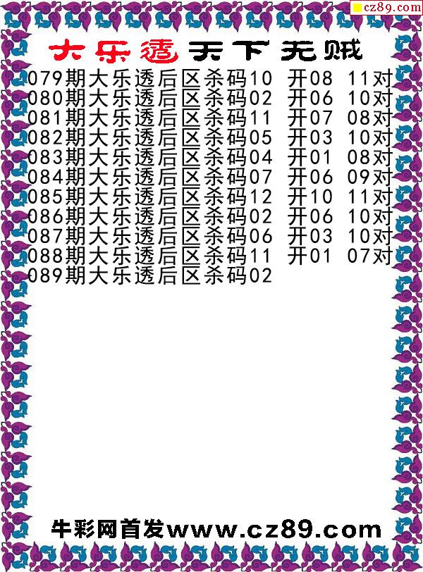 大乐透005期牛彩特邀专家前区后区杀号定胆图表
