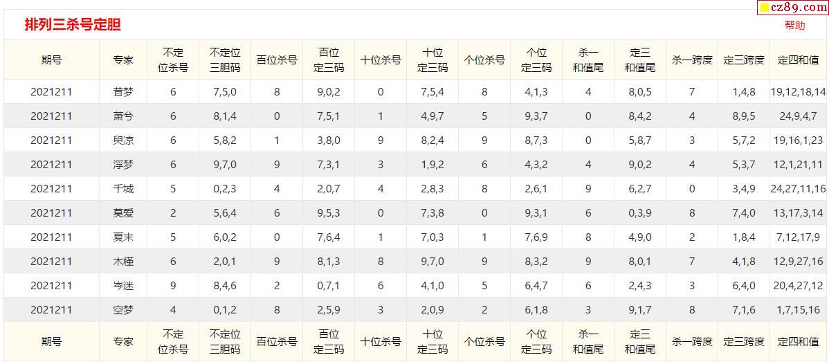 21年211期彩宝贝专家体彩P3杀号定码图表