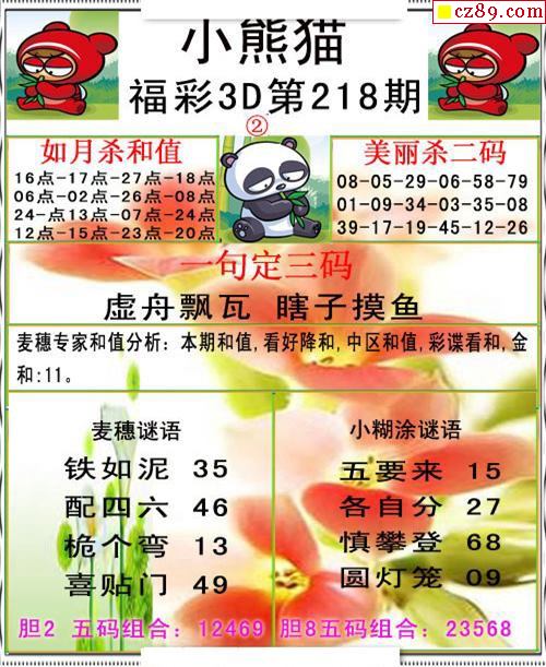 小熊猫彩报2021218期3d图谜