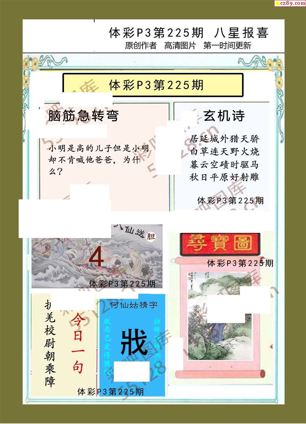 八星报喜225期体彩p3图谜