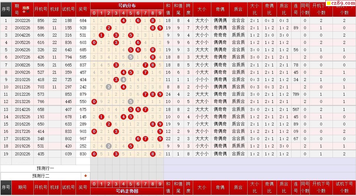 第226期福彩3D历史同期对比