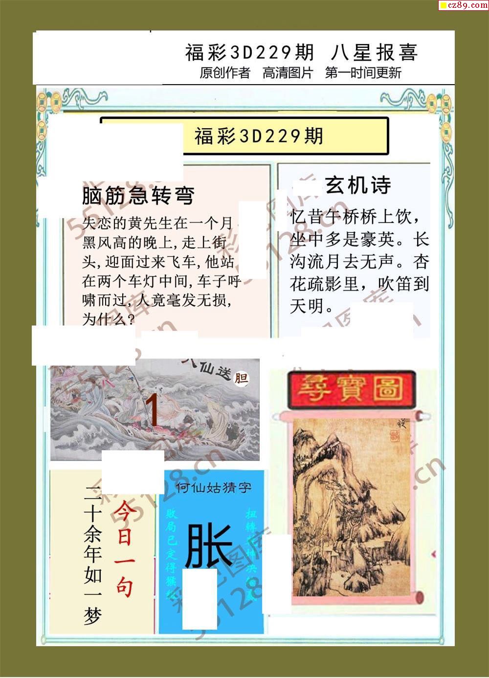 八星报喜21年229期福彩3d画谜