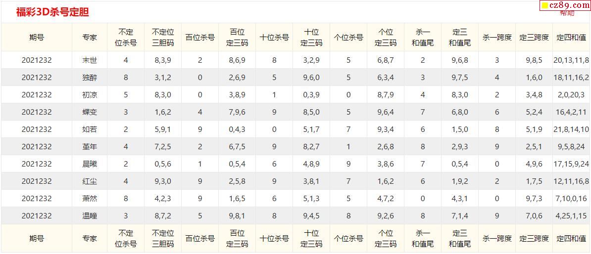 21年232期彩宝贝专家福彩3D杀号定码图表