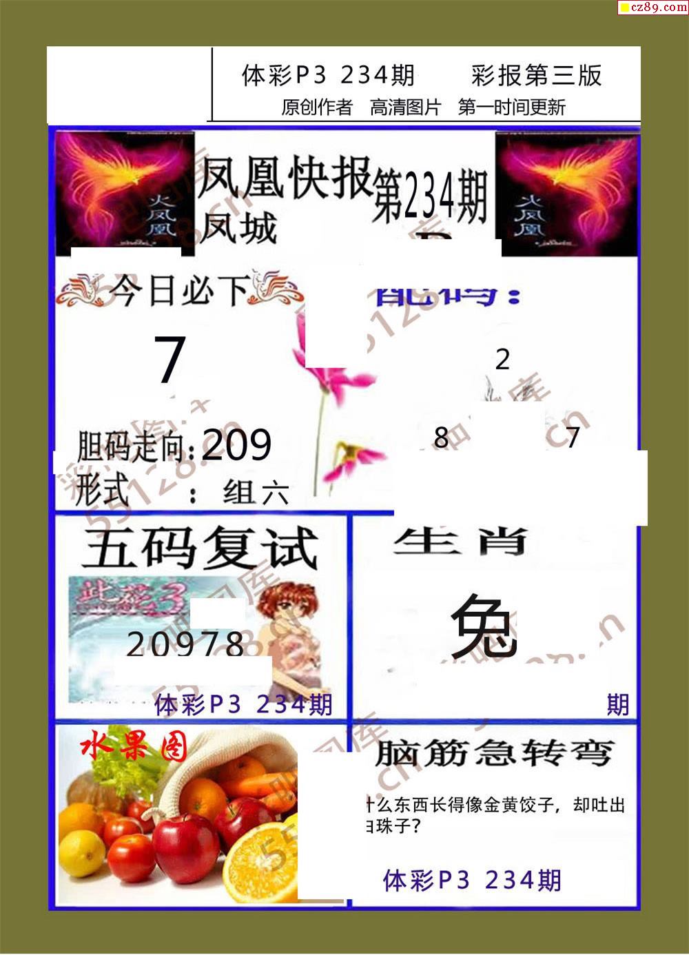 香岛彩报234期体彩p3图谜