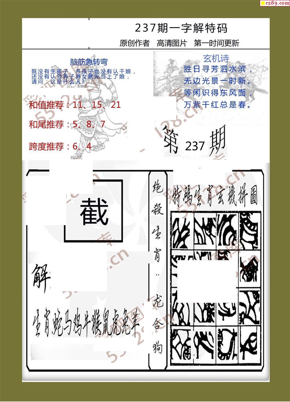 20年237期一字解特码福彩3d彩报
