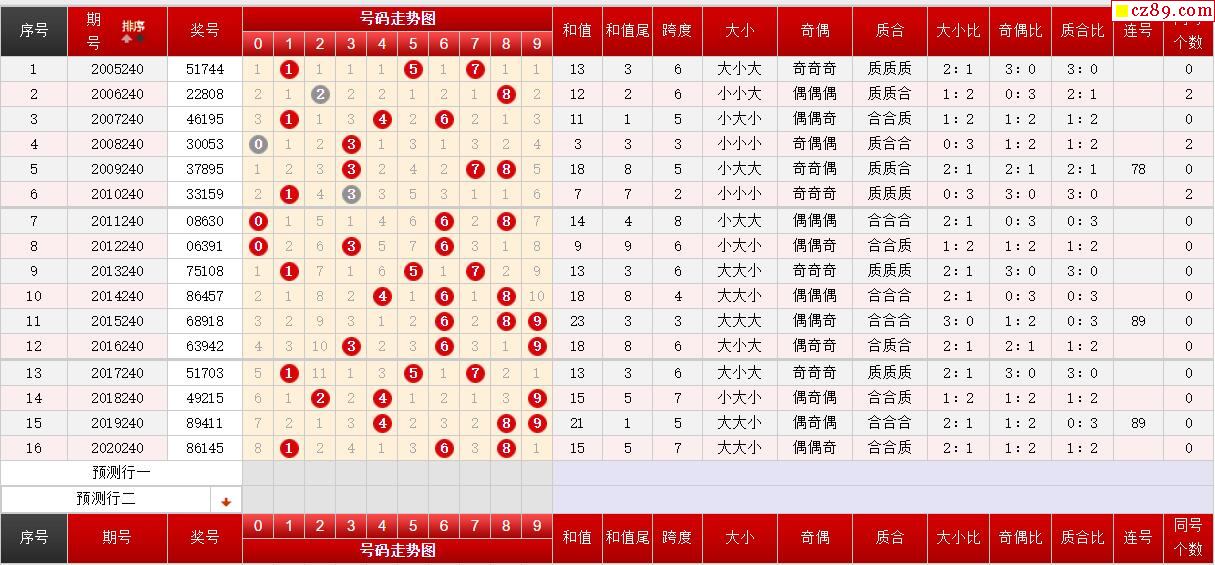 第240期体彩P3历史同期对比