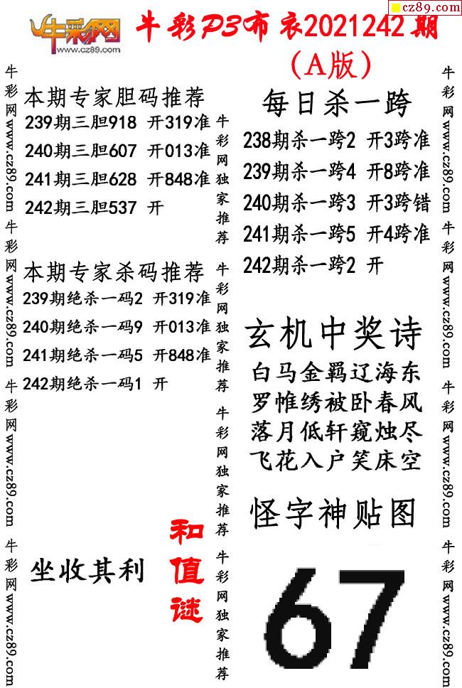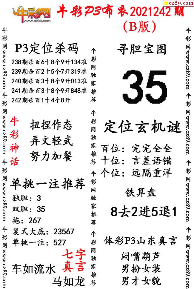 牛彩P3布衣21年242期AB版图谜(独家发布)