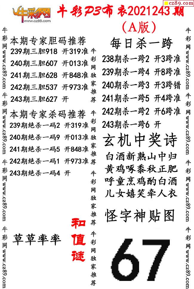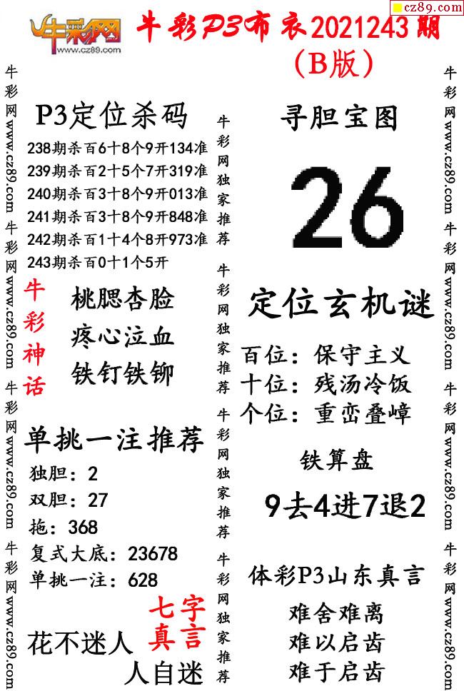牛彩P3布衣21年243期AB版图谜(独家发布)