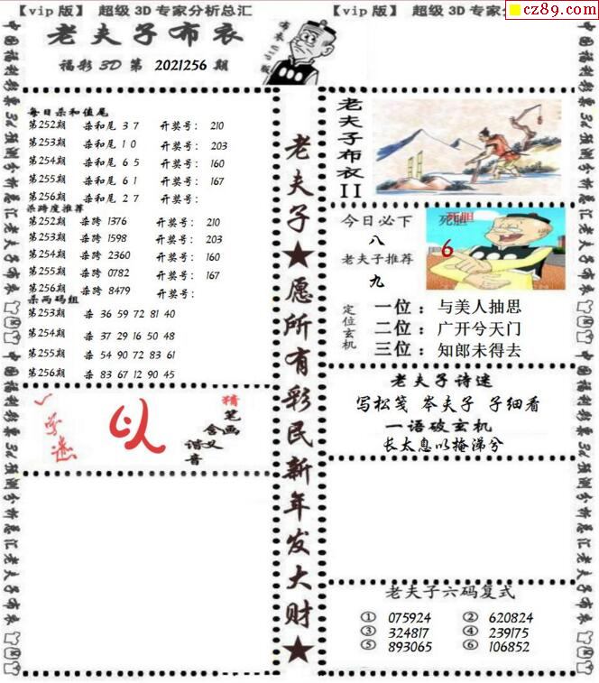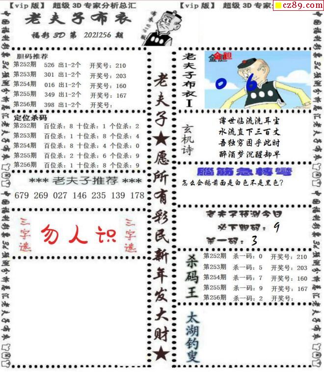 老夫子布衣2021256期3d图谜