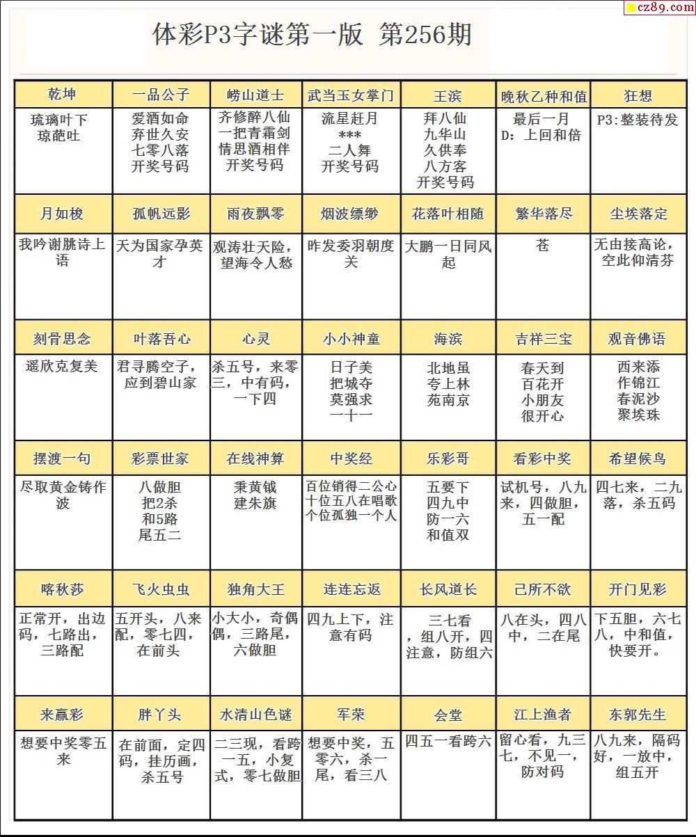 牛彩版体彩P3字谜彩报图21年256期打印版