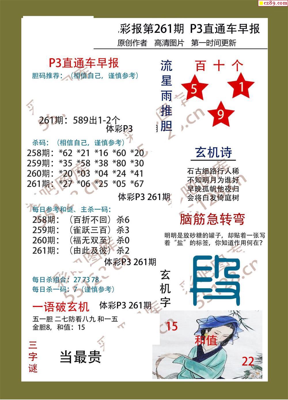 直通车早版261期体彩p3图谜