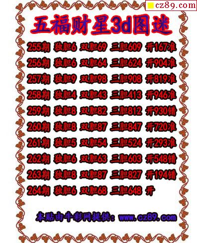 五福财星三胆2021264期3d图谜(原创)