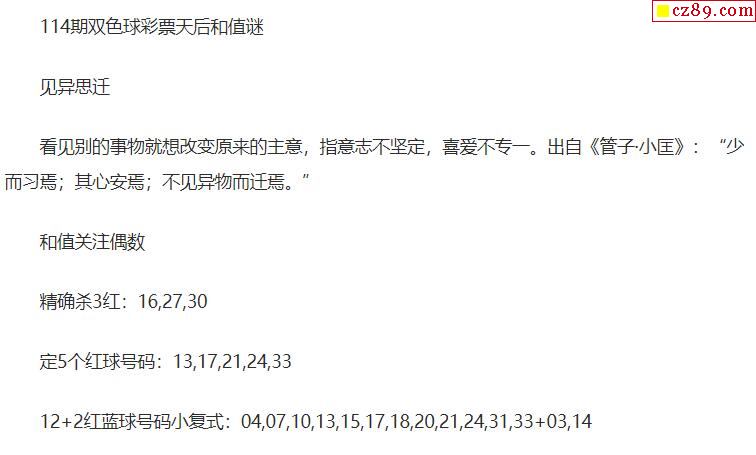 21年福彩双色球第114期 乾兵预测红球三区比参考