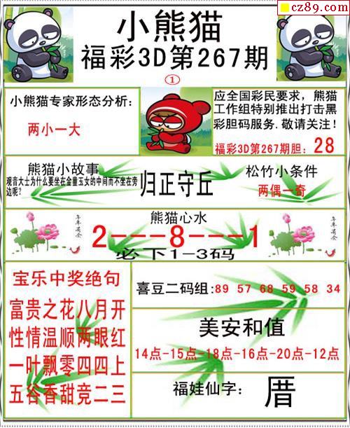 小熊猫彩报2021267期3d图谜