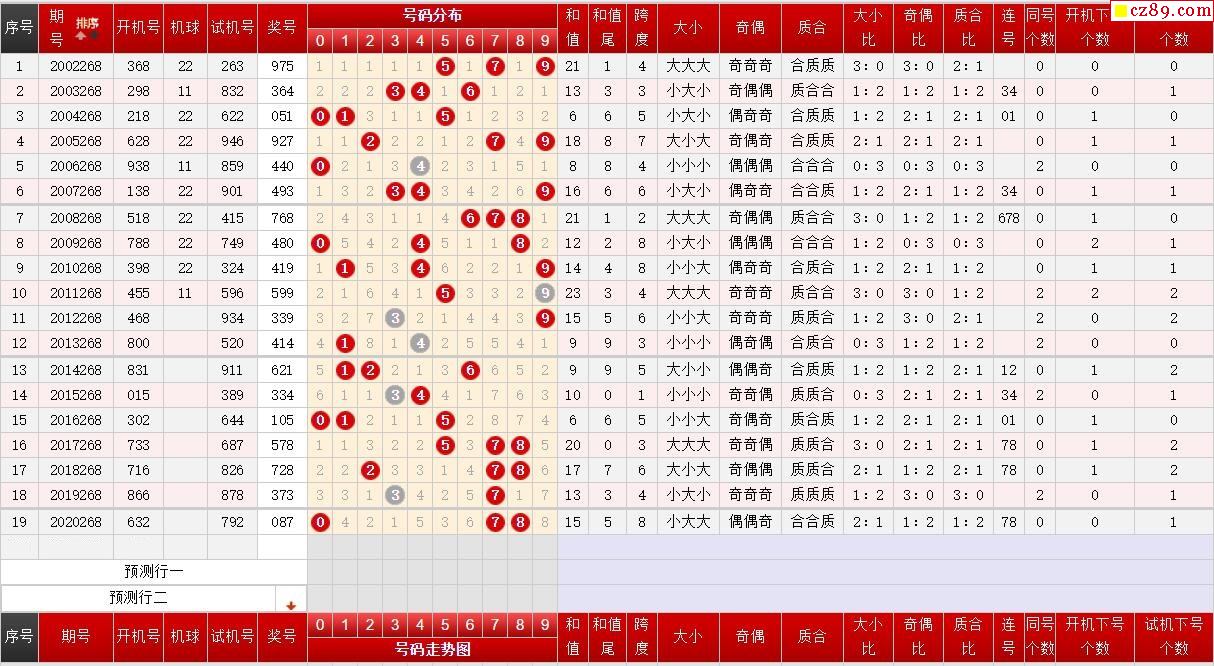 第268期福彩3D历史同期对比