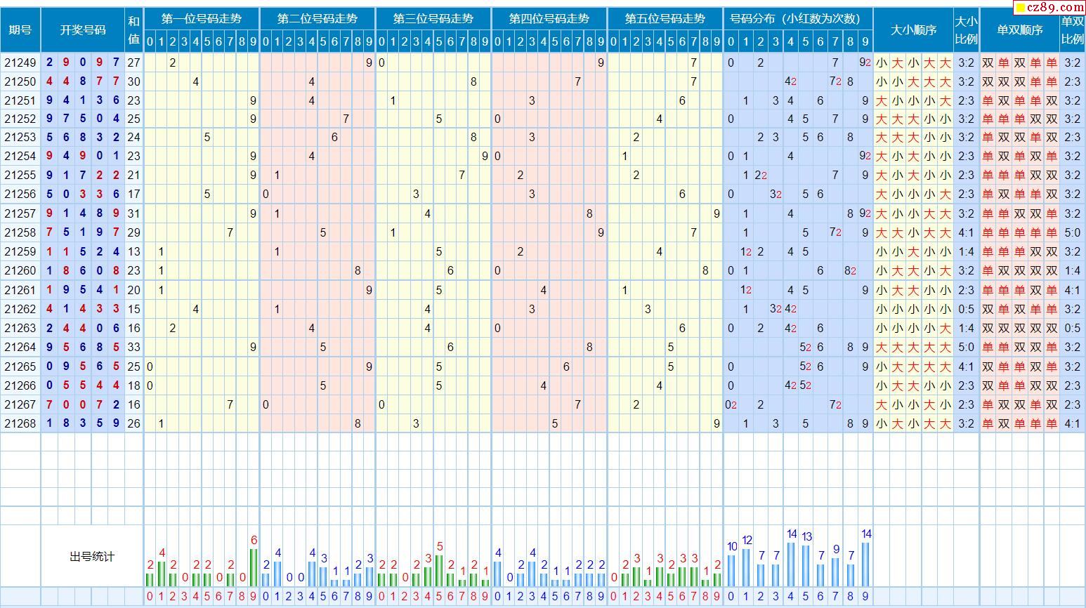 269期体彩排列5近期历史号码图表