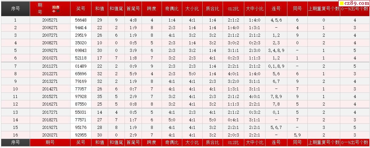 第271期体彩P5历史同期对比
