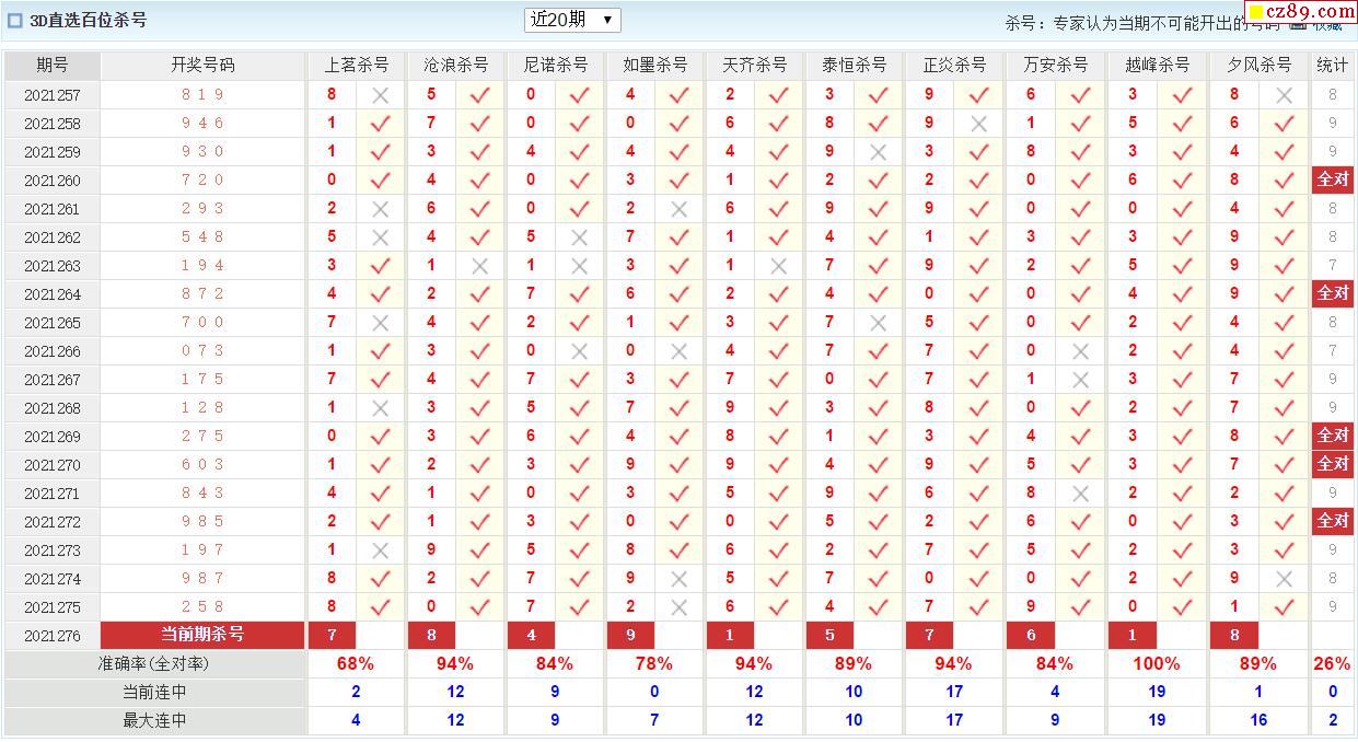 25年341期彩宝贝专家福彩3D杀号定码图表
