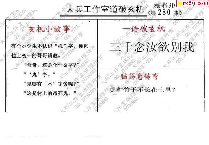 大兵全版2021280期3d图谜