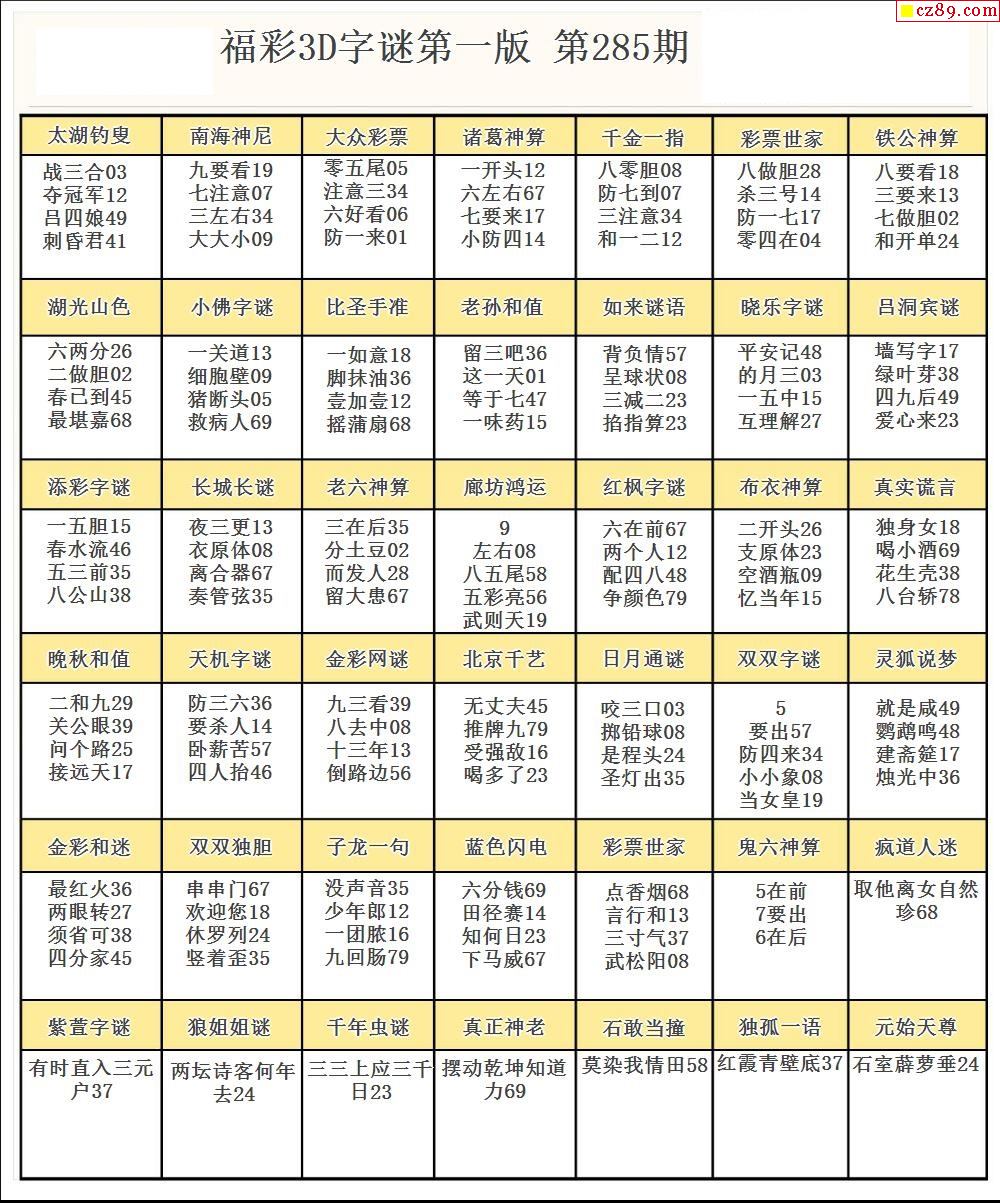 便民工作室对福彩3D21年285期全部字谜汇总浅释(复制打印版)