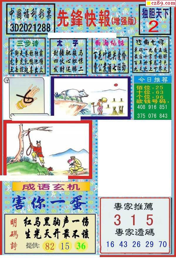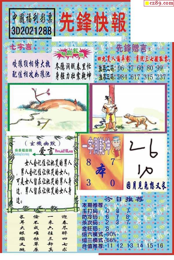 先锋快报2021288期3d图谜