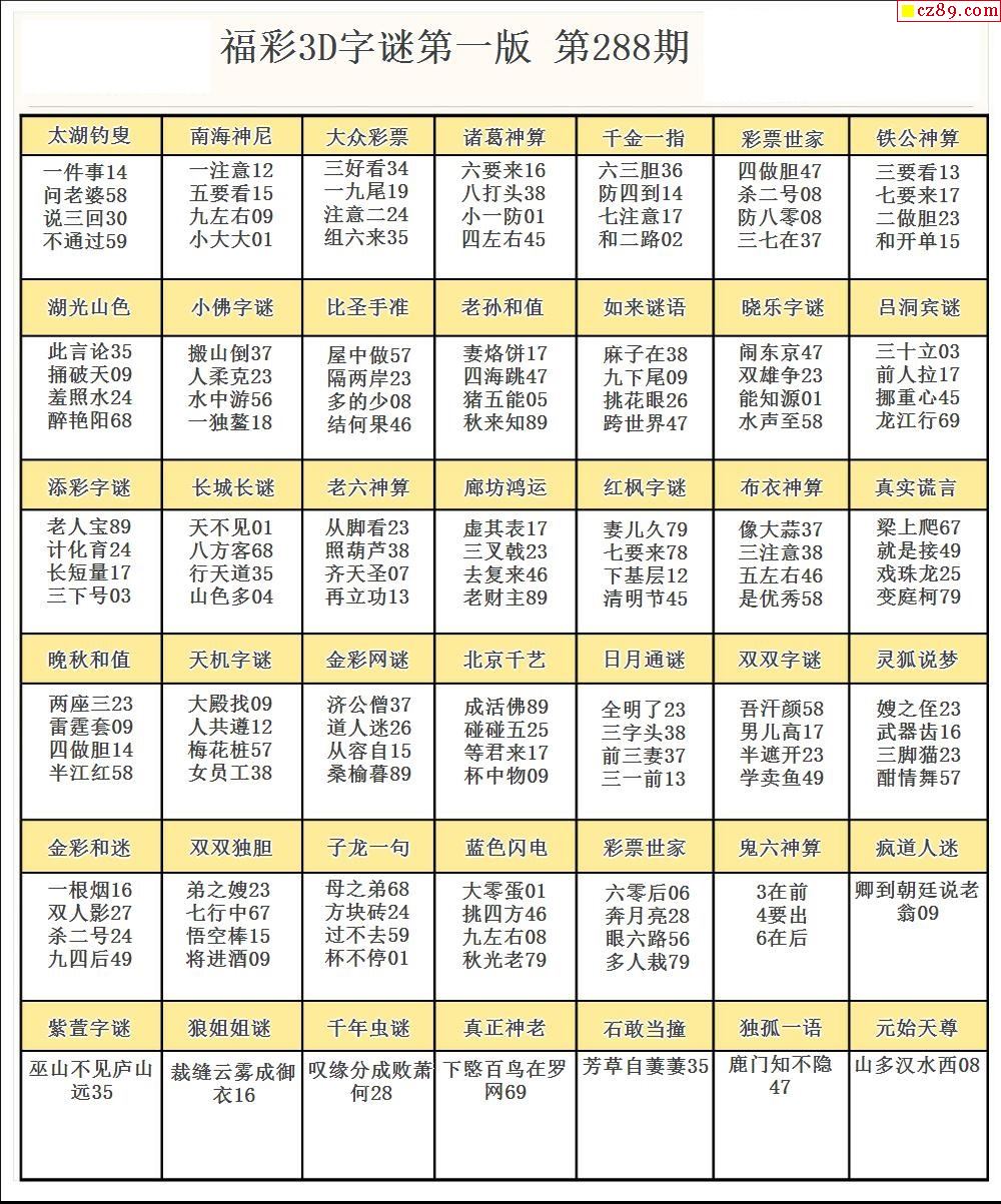 神舟26068期3d图谜总汇牛彩网采摘收集