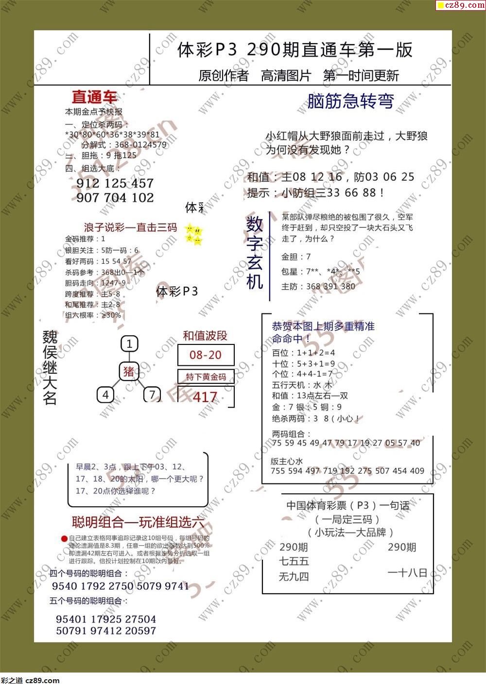 牛彩P3布衣25年335期AB版图谜(精华版)