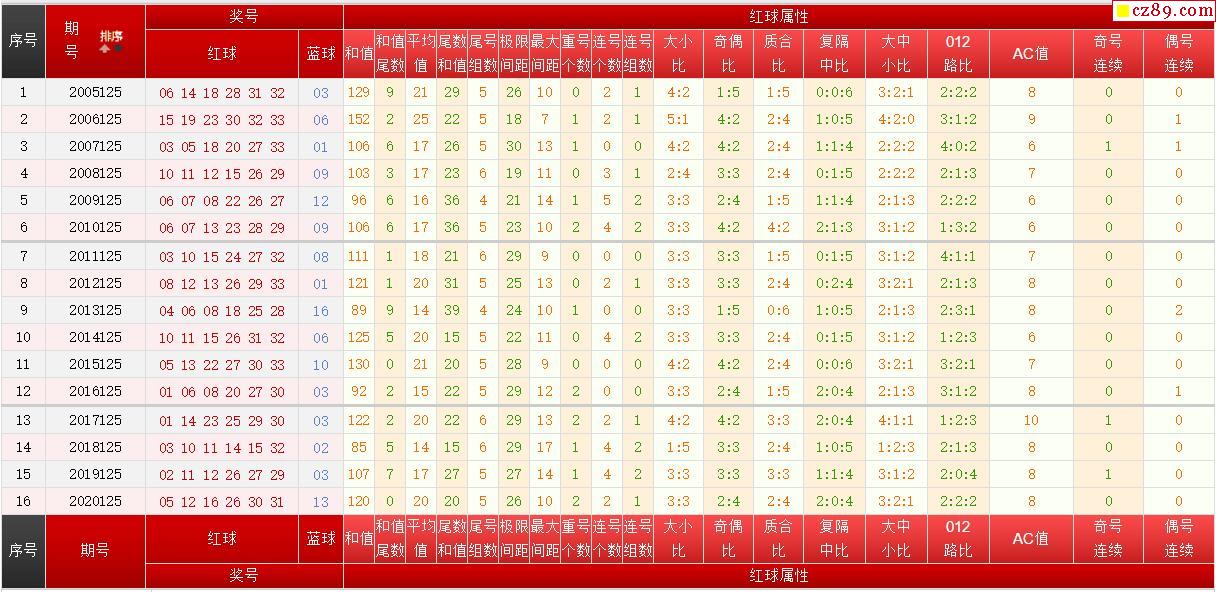 21年福彩双色球第125期 阿旺历史同期奖号分析