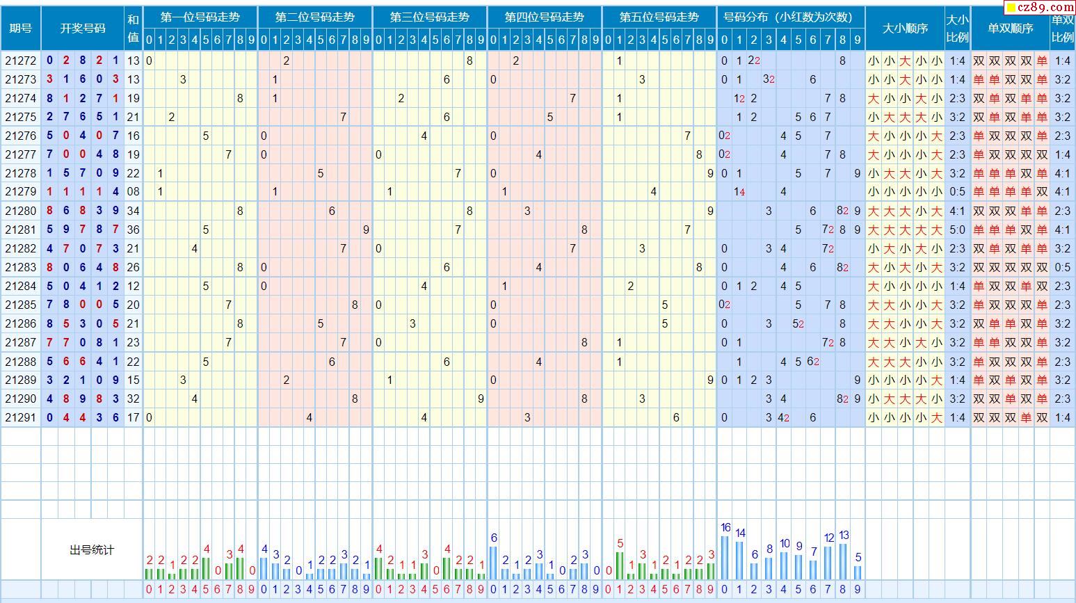 292期体彩排列5近期历史号码图表