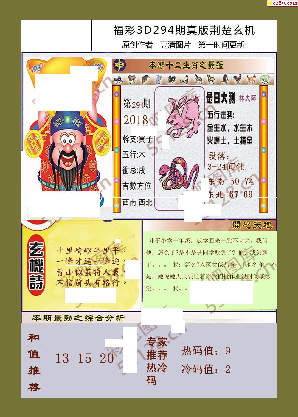 2021福彩3d294期真版荆楚玄机彩报