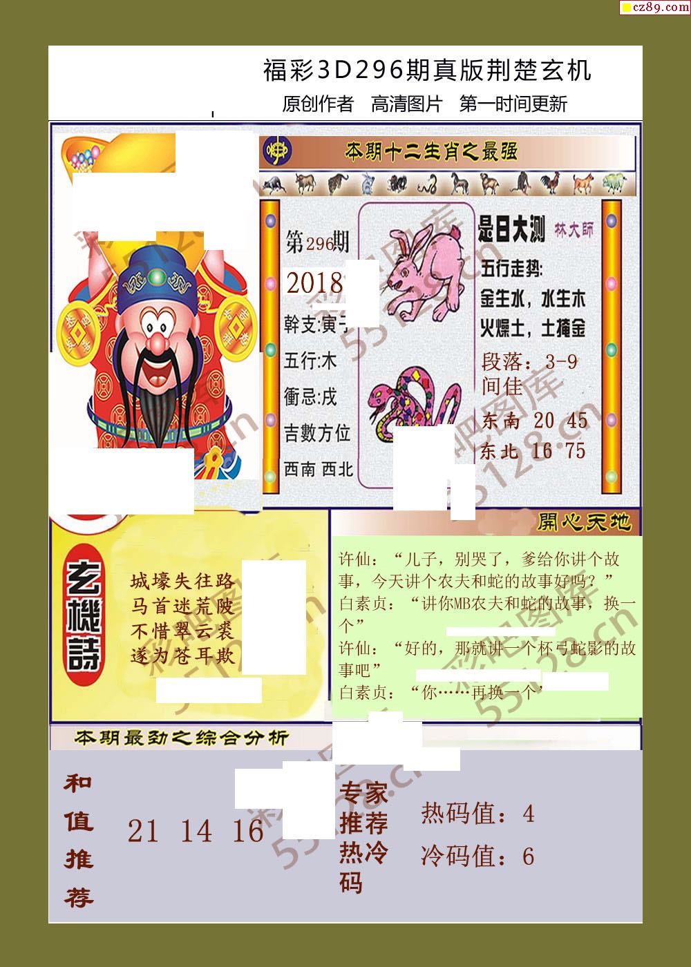 2021福彩3d296期真版荆楚玄机彩报