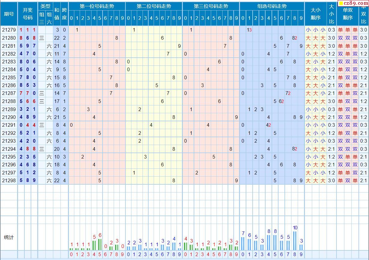 299期体彩排列3近期历史号码图表