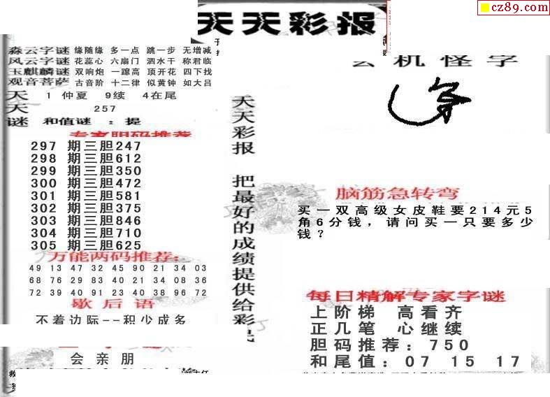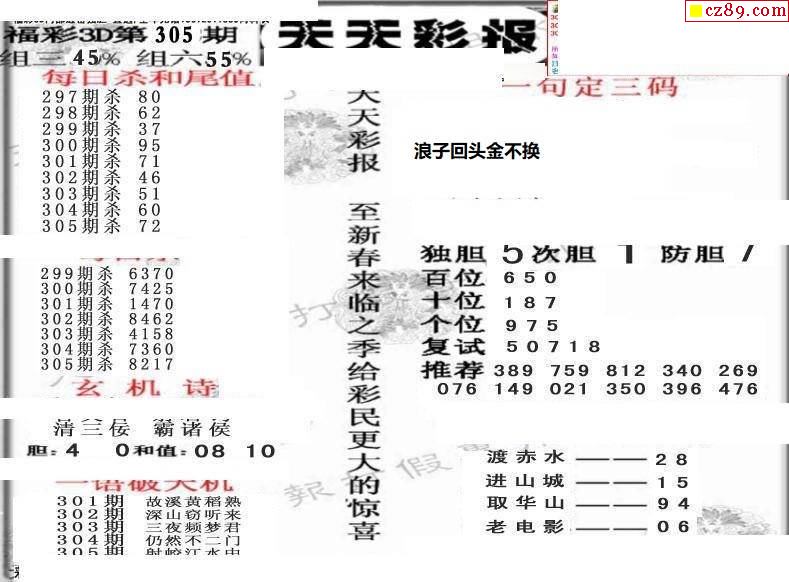 天天彩报21年305期3d画谜专区