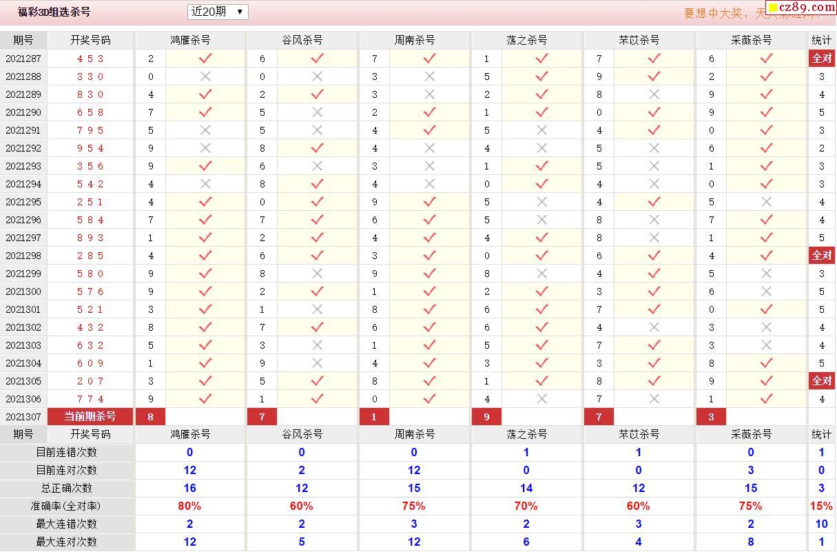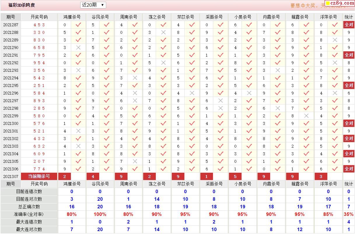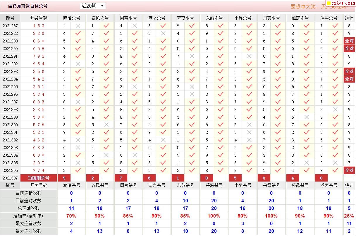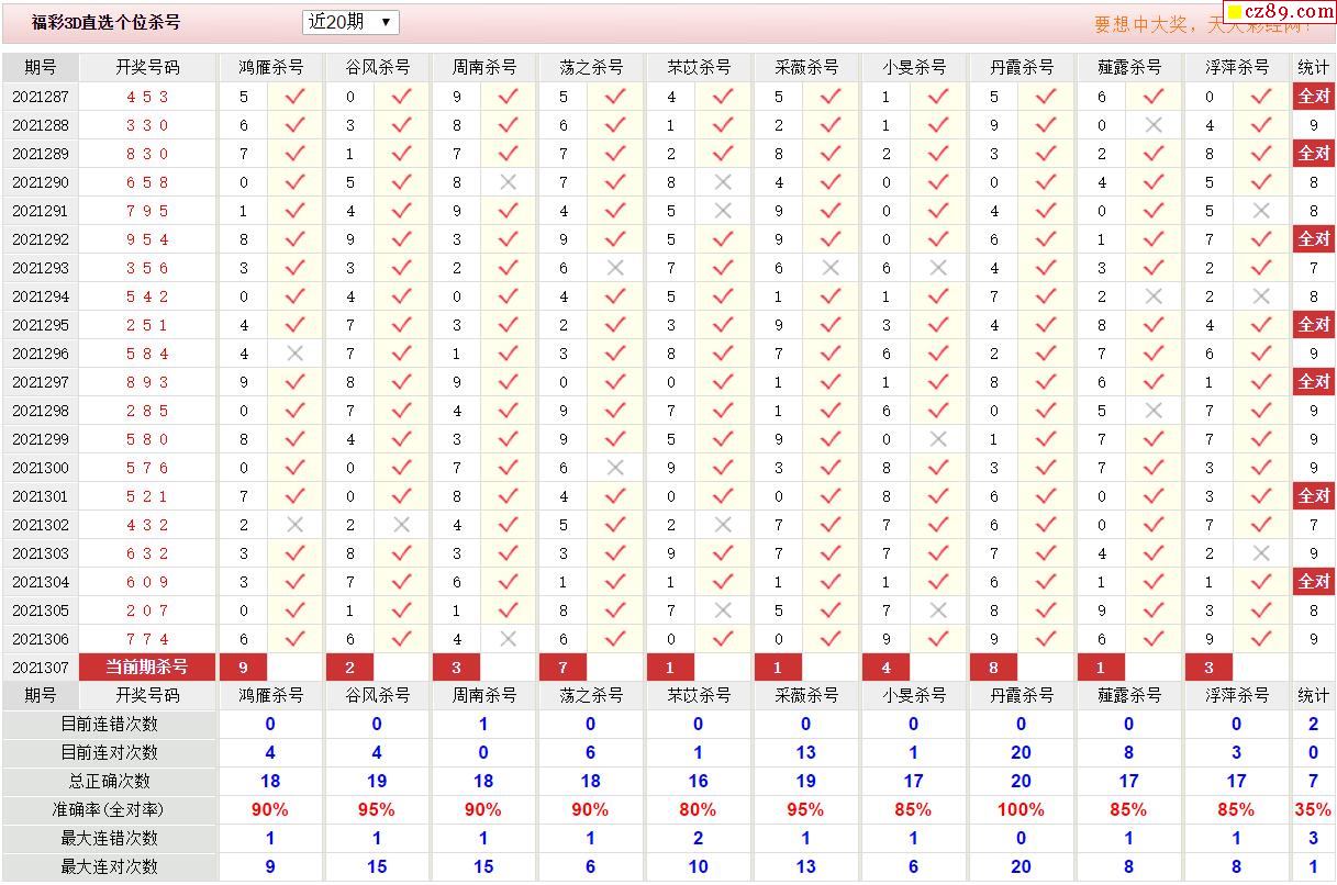 307期彩票专家福彩3D定位杀胆推荐图表