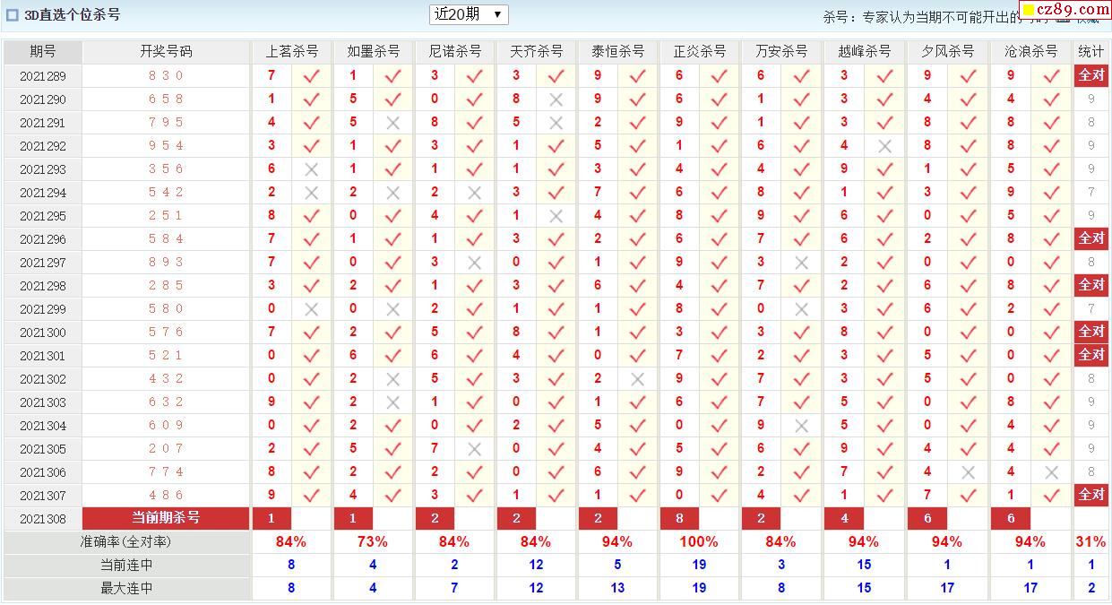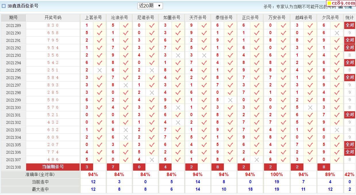 25年344期彩宝贝专家福彩3D杀号定码图表
