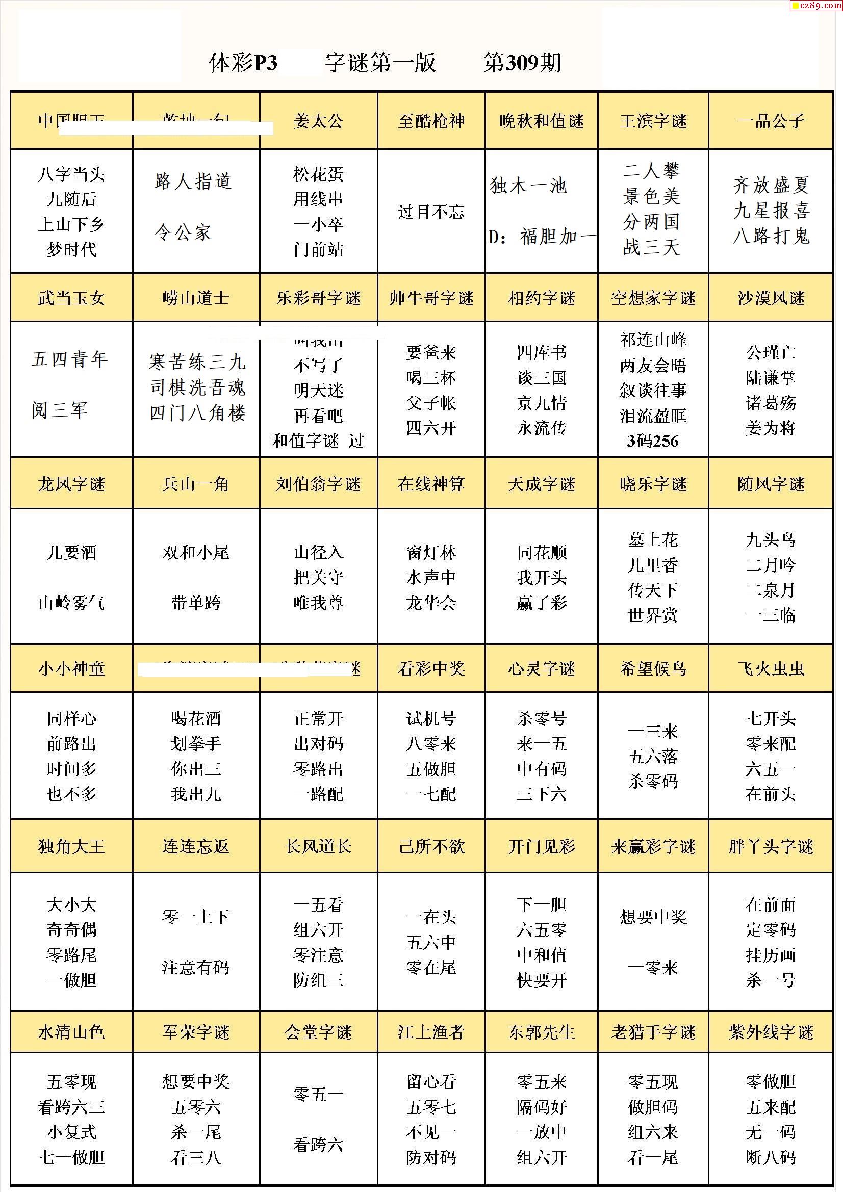 牛彩版体彩P3字谜彩报图21年309期打印版