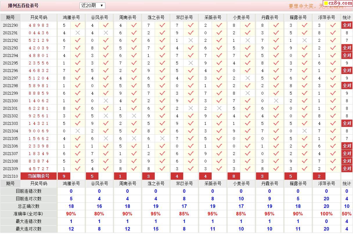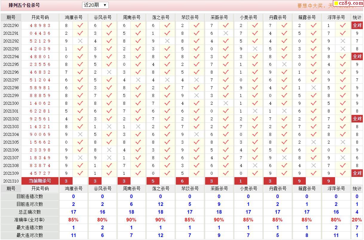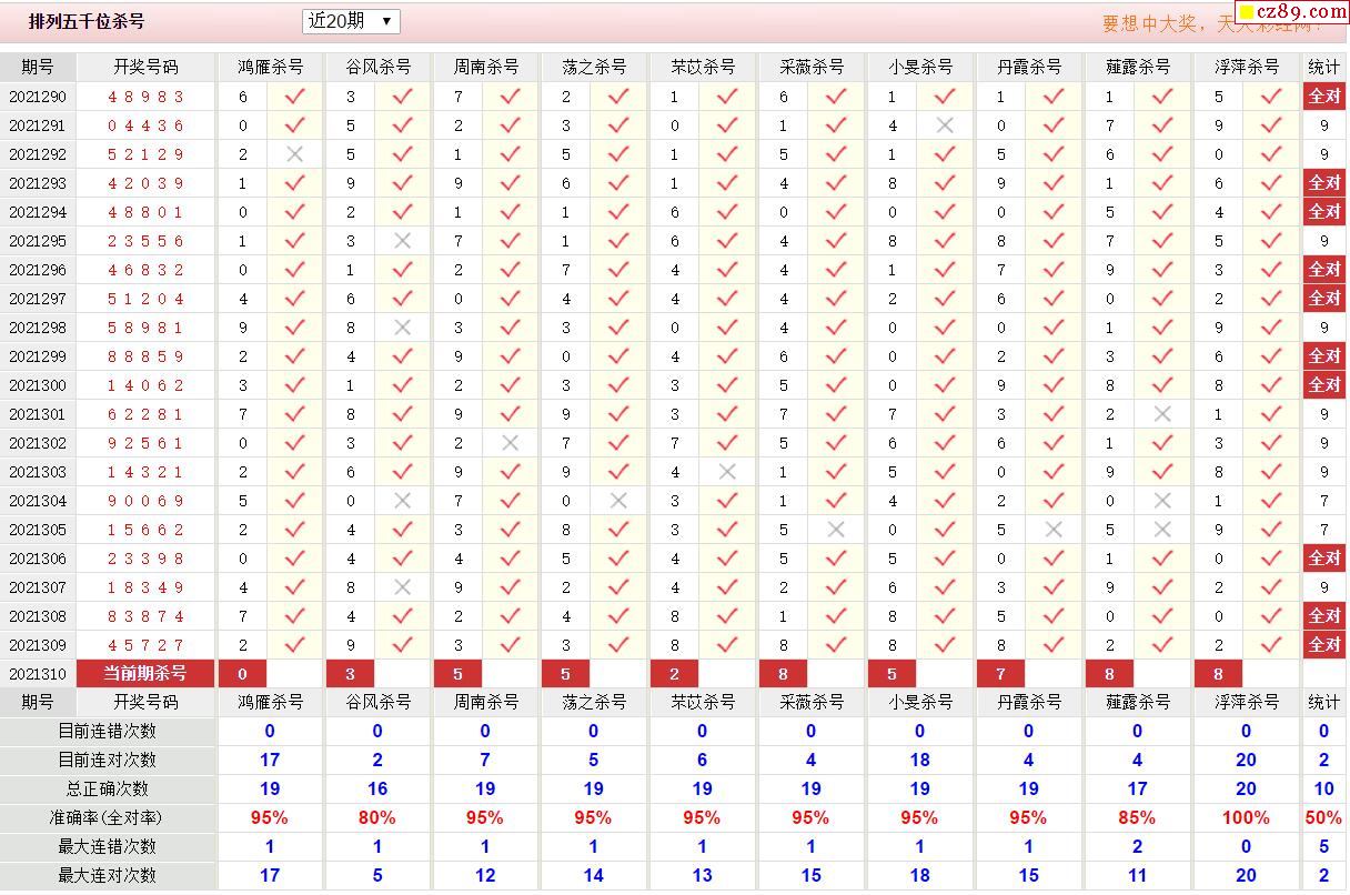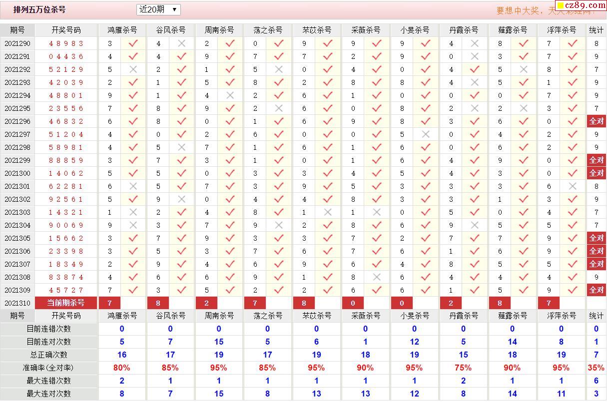 310期彩票专家体彩P5杀号推荐图表