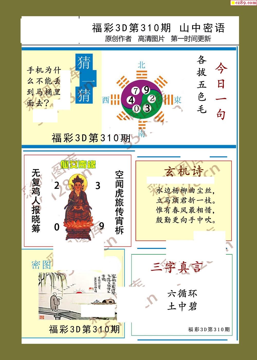 福彩3d21年310期山中密语彩报