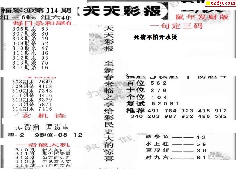 天天彩报21年314期3d画谜专区