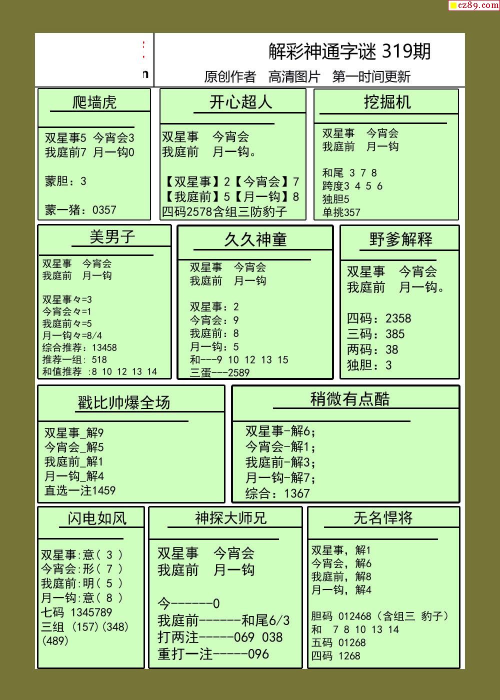 便民工作室对福彩3D21年319期全部字谜汇总浅释(复制打印版)