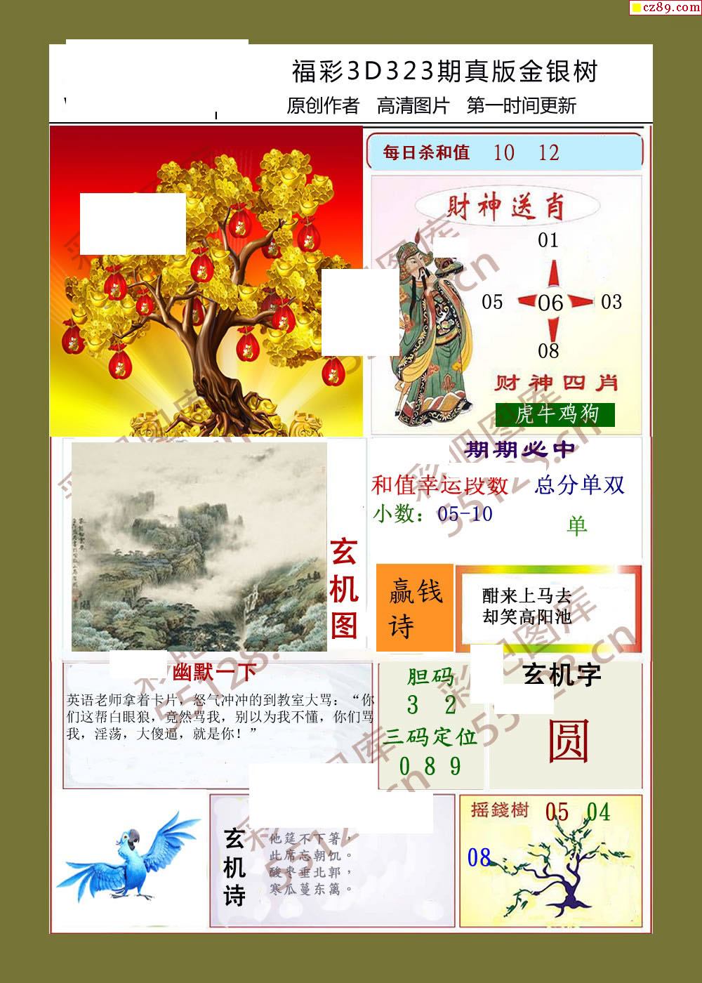 金银树21年323期福彩3d字画谜