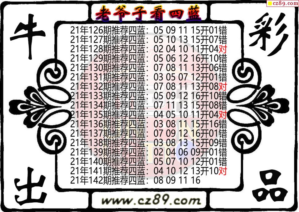 双色球142期老爷子看四蓝图谜