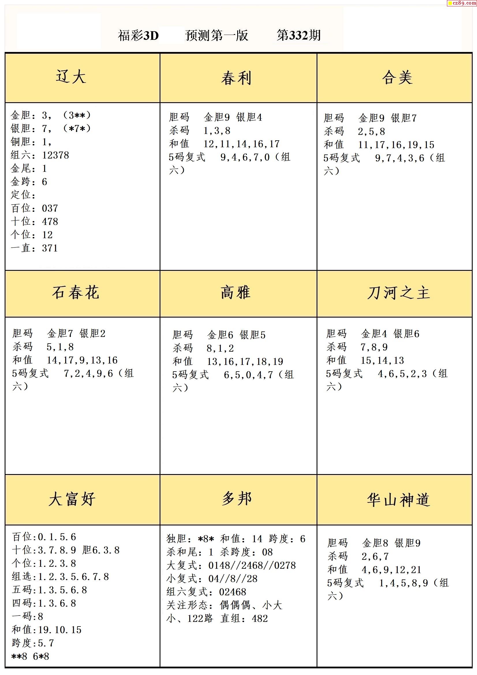牛彩版3D预测彩报图21年332期打印版