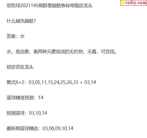流年21年145期双色球动脑筋急转弯龙头字谜