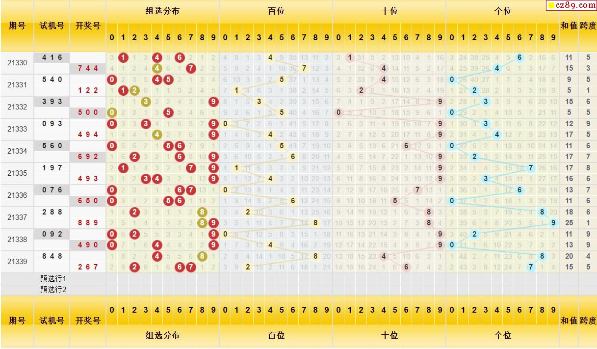 千禧2021年第330期3d试机号:[416]试机号对应码:[344]