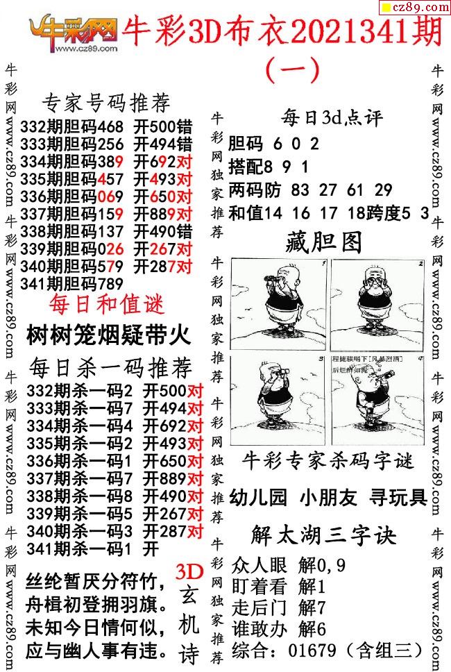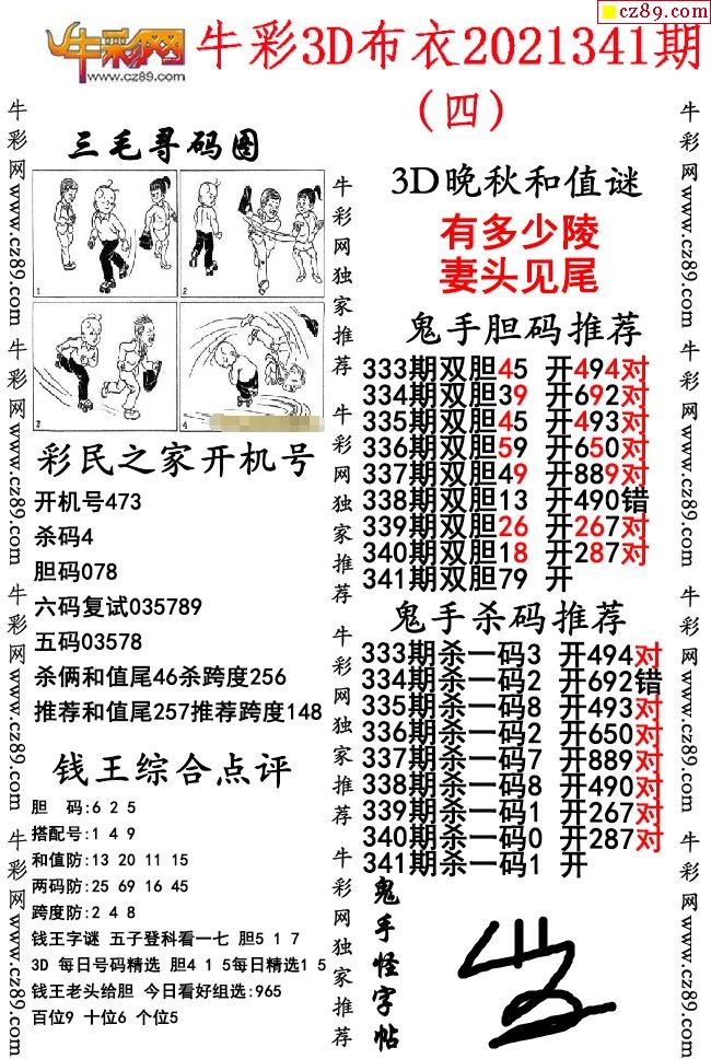 牛彩版布衣精选合辑341期3d图谜(独家推荐)