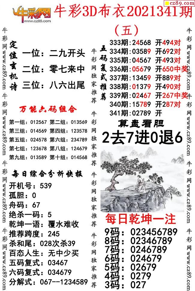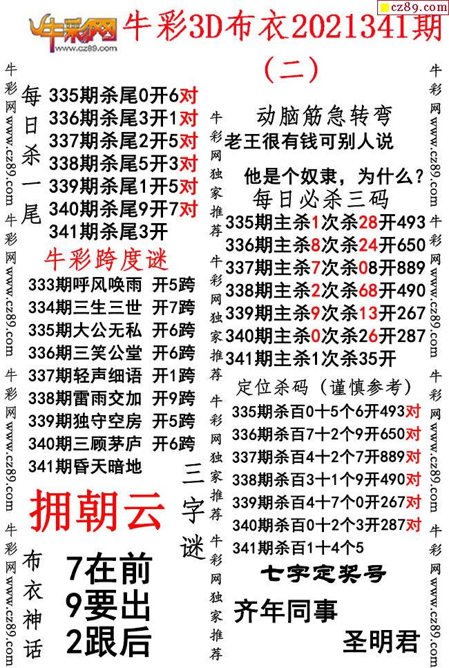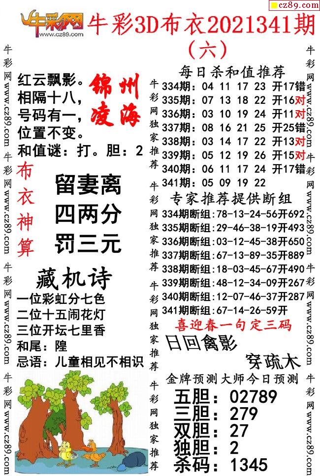 牛彩布衣精选合辑341期3d图谜(独家推荐)